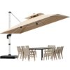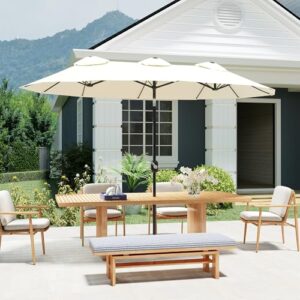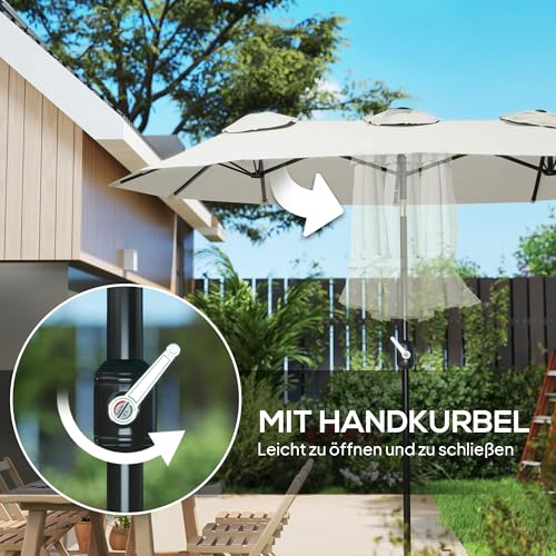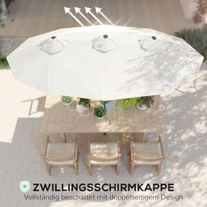 - Für den Außenbereich gemacht: Dieser große Doppelschirm verfügt über drei Belüftungsöffnungen auf der Oberseite, die für hohe Stabilität bei Wind sorgen. Die Bespannung besteht aus 180 g/m² Polyestergewebe, während der Stahlmast und 12 stabile Streben einen festen Halt bieten.
