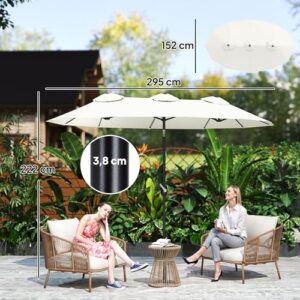- Produktdetails: Gesamtmaße: 295L x 152B x 222H cm. Erforderliche Beschwerung von 30 kg nicht im Lieferumfang enthalten. Passende Schirmbeschwerung von Outsunny ID: 84D-077. HINWEIS: Verwenden Sie den Doppelschirm nicht bei extremem Wetter (starker Wind oder Niederschlag).