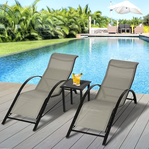 - 3-teiliges Set: Bringen Sie Ihren Garten oder Ihre Veranda mit diesem 3-teiligen Gartenliegen-Set auf Vordermann. Das ganze Set besteht aus 2 Liegestühlen und einem Beistelltisch, die sich mühelos an die Bedürfnisse Ihres Außenbereichs anpassen, ideal für Unterhaltung und Entspannung