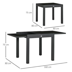 - Platzoptimierung: Dient der Terrassentisch als quadratischer Beistelltisch (80 L x 80 B x 75 H cm) oder ausziehbarer Esstisch für bis zu 6/8 Personen.