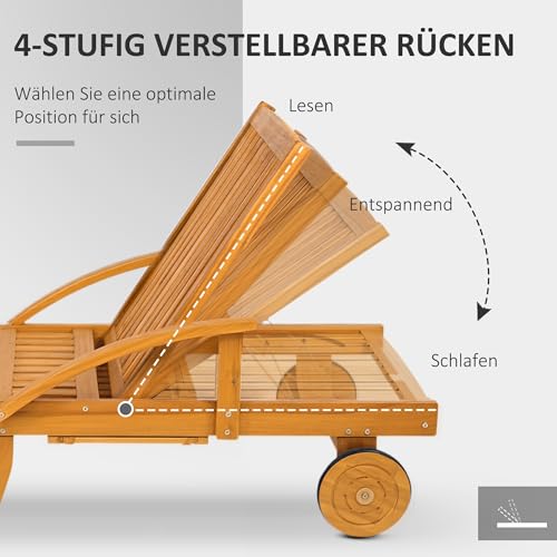 - Robuste Konstruktion: Aus Akazienholz mit einer versiegelten Oberfläche gefertigt, trotzt diese Gartenliege den Witterungseinflüssen und sichert eine dauerhafte Nutzung im Freien