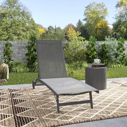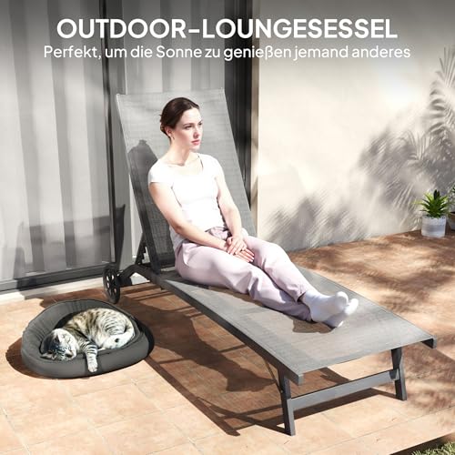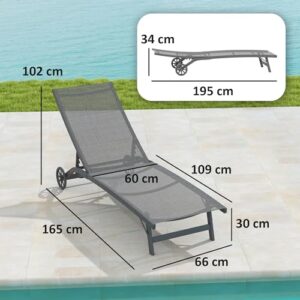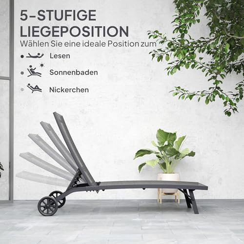 - Verstellbare Rückenlehne: Die Rücklehne der Gartenliege ist 5-stufig verstellbar (102 cm, 93 cm, 80 cm, 65 cm und 34 cm Bodenabstand) und kann bis zu einem Winkel von 175° zum Lesen, Entspannen und Schlafen eingerastet werden.