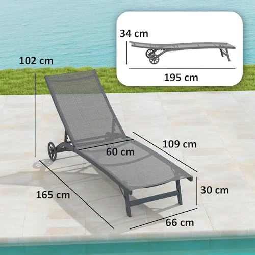 - Tragbare Liege mit Rädern: Dieser Liegestuhl verfügt über zwei leichtgängige Räder für einfachen Transport und kann leicht von nur einer Person bewegt werden.