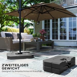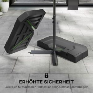 - Zweiteilige Schirmgewichte: Versetzter Ampelschirm Ständer für freitragende Schirme mit Kreuzbasis. Stabilisieren den Schirm, bieten mehr Schatten und sind platzsparend stapelbar bei Nichtgebrauch.