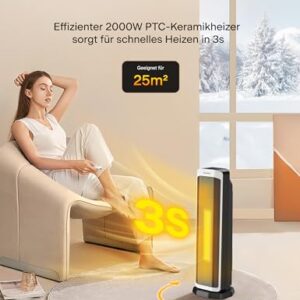 - 【Blitzschnelle 3S Aufheizung】Der Keramik Heizlüfter erreicht in nur 3 Sekunden volle Heizleistung durch hochwertige PTC Keramikelemente und verbreitet sofort wohlige Wärme ohne kalte Startphase
