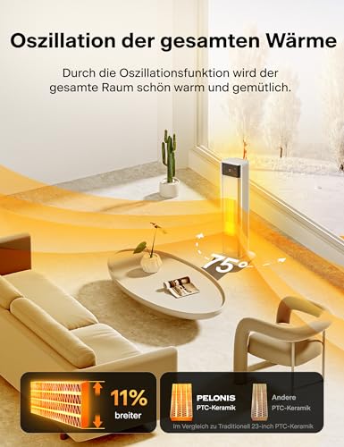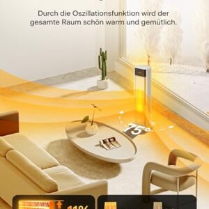 - 【10% Mehr Reichweite & 75° Oszillation】Der Heizlüfter mit 75° Oszillation verteilt Wärme gleichmäßig im Raum und deckt mit 58CM Großgitter 10% mehr Fläche ab als herkömmliche Elektroheizung für große Räume