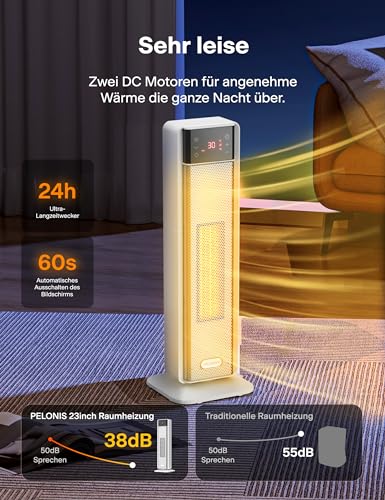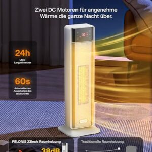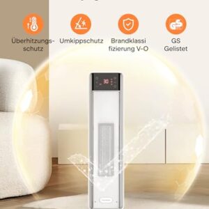 - 【24h Timer & Schlafmodus】Programmieren Sie den Heizlüfter mit Timer bequem per Fernbedienung für bis zu 24 Stunden – das Display schaltet sich nach 60S automatisch ab für ungestörten Schlaf