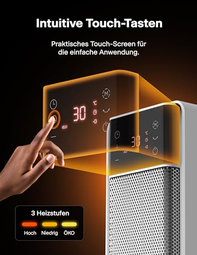 - 【3 Heizmodi & Intelligentes ECO-Thermostat】Wählen Sie zwischen High/Low/ECO Modus und passen Sie die Temperatur von 5°C bis 35°C präzise an – der ECO-Modus spart automatisch Energie indem er die Heizleistung an die Raumtemperatur anpasst