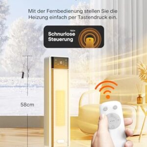 - 【Leiser Betrieb & Duale Steuerung】Der leise Heizlüfter (nur 38dB) wird via LED-Touchpanel oder Fernbedienung bedient – ideal für Schlafzimmer, Büro oder Wohnzimmer ohne Schlafstörungen