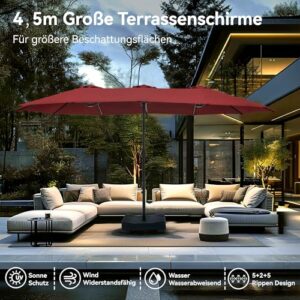 - Extra großer Schatten für alle: Genießen Sie die Sonne mit unserem 2,7x4,5m großen Terrassenschirm, der eine großzügige Beschattungsfläche von bis zu 12,5 Quadratmetern bietet, kann es in verschiedenen Gelegenheiten wie Garten, Terrasse, Hinterhof, Strand, Pool, Park, Shop Gate Markt und so weiter verwendet werden