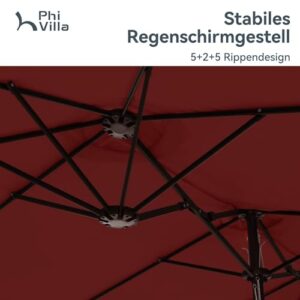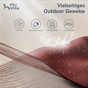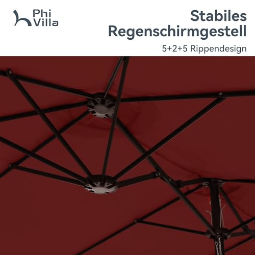 - Hochwertiger Stoff: Das Schirmdach unseres doppelseitigen PHI VILLA-Schirms für den Außenbereich ist aus 100 % Polyester gefertigt. Er ist wasserdicht, atmungsaktiv, ausbleichfest, UV-beständig und leicht zu reinigen, damit er die Jahreszeiten überdauert