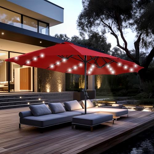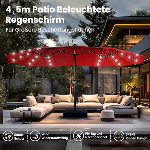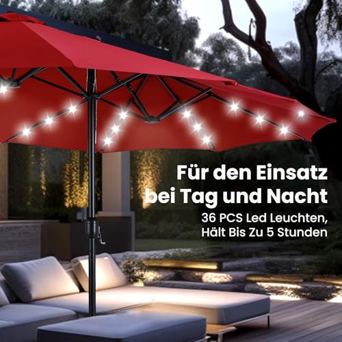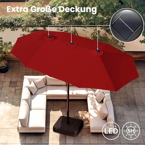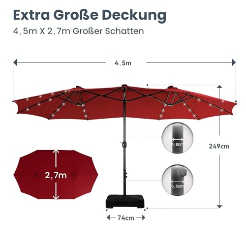 - Extra große Patio beleuchteten Sonnenschirm: PHI VILLA dieser 2,7x4,5m große Terrassenschirm verfügt über ein doppelseitiges Design, das Ihnen maximalen Schutz bietet, der Ihnen große Schatten für Ihr Outdoor-Vergnügen bringt. Perfekt geeignet für private und gewerbliche Standorte