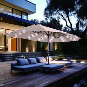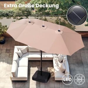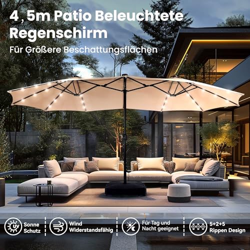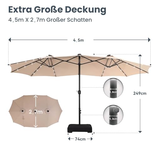 - Extra große Patio beleuchteten Sonnenschirm: PHI VILLA dieser 2,7x4,5m große Terrassenschirm verfügt über ein doppelseitiges Design, das Ihnen maximalen Schutz bietet, der Ihnen große Schatten für Ihr Outdoor-Vergnügen bringt. Perfekt geeignet für private und gewerbliche Standorte