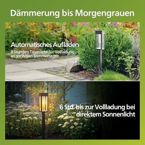 - GARTENDEKO AUFWERTEN – Charmante Solarleuchten; ideal für Wege, Gärten, Höfe, Rasenflächen, Balkone, Terrassen und Blumenbeete; warme Glut bereichert romantische Abende, festliche Feierlichkeiten und jede Outdoor-Szene