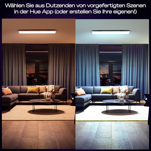 - Bequeme Lichtsteuerung: Die Hue Deckenleuchte lässt sich über die kostenlose App, per separat erhältlichen Dimmschaltern oder per Sprache mit Alexa, Google Assistant und Apple Home