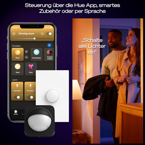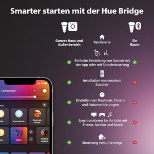 - Für die Bedienung im gesamten Zuhause: Erweitern Sie Ihr System mit der Hue Bridge und erleben Sie das volle Smart-Home-Erlebnis mit zahlreichen Funktionen