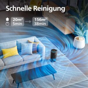 - GROßE ABDECKUNG BIS ZU 156 m²: mit CADR von 600 m³/h kann es 20 m² in weniger als 5 Minuten reinigen.