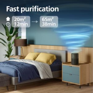 - 【Große Abdeckung bis zu 65m²】Mit CADR 250m³/h kann es 20m² in weniger als 12min reinigen.
