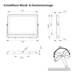 - IP65: Das Flutlicht ist perfekt für die Außenanwendung geeignet