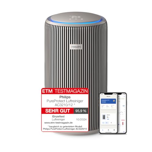 Philips PureProtect 3200 Serie: Intelligenter Luftreiniger, HEPA- und Aktivkohlefilter, CADR 500 m³/h für 130 m², besonders leise und energieeffizient, erfasst 99,97% Allergene (AC3210/12)