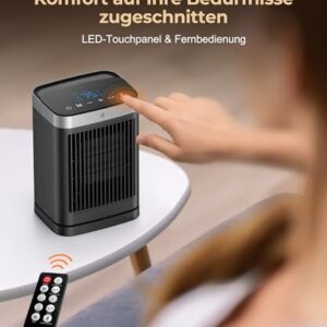 - Intelligente Steuerung & Digital Display --- Dieser Heizlüfter mit Fernbedienung bietet Ihnen maximalen Komfort. Das klare Digitaldisplay und der Timer (bis zu 12 Stunden) ermöglichen eine einfache Bedienung. Sie müssen nicht mehr aufstehen, um die Einstellungen zu ändern – ob im Bett oder am Schreibtisch, genießen Sie sofortige Wärme auf Knopfdruck. Diese fortschrittliche Elektrische Heizung bietet mehr Effizienz und Komfort im Alltag