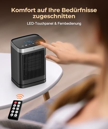 - Schnelle PTC-Heizung & 3 Betriebsmodi --- Dieser Heizlüfter mit fortschrittlicher PTC-Keramik-Heiztechnologie liefert bereits nach nur 2 Sekunden wohlige Wärme. Mit drei Modi – Hoch, Niedrig und ECO-Modus – heizt er kleine und mittelgroße Räume im Nu auf. Die temperatur regelbar von 5°C bis 32°C bietet Ihnen maximale Flexibilität. Diese effiziente Elektroheizung schafft sofort eine gemütliche und behagliche Atmosphäre, egal ob Sie arbeiten, lernen oder einfach nur entspannen