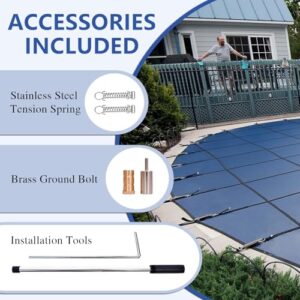 - Einfache Installation: Inklusive Montagematerial und komplettem Edelstahlzubehör. Stabile Anker sind in das Pooldeck integriert, sodass keine Stolpergefahr entsteht, wenn die Poolabdeckung nicht verwendet wird.