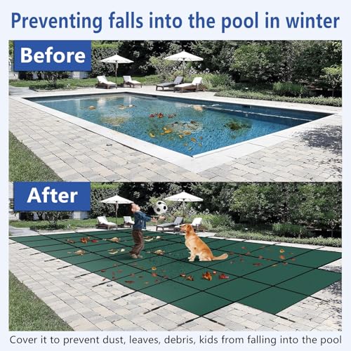 - Umfassender Schutz: Geeignet for Poolbesitzer. Diese Poolabdeckung erfüllt mehrere Zwecke: Die Sicherheitsabdeckung for Einbaupools schützt Kinder und Haustiere außerhalb der Saison. Sie kann den Pool reinigen und die Wasserverdunstung reduzieren.