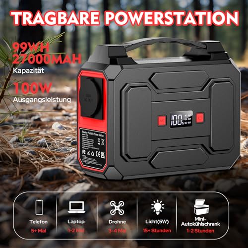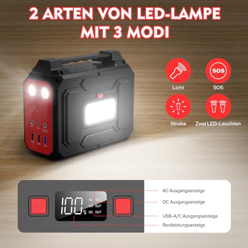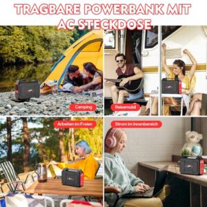 - BREITES ANWENDUNGSBEREICH: Powerstation eignet sich für Camping, Wohnmobilreisen, Angeln usw. und unterstützt kleine Geräte unter 100 W, wie Ipid, Smartphones, Drohnen, LED-Lampen, Kameras, Laptops usw. Solar generator ist perfekt für alle Ihre Outdoor-Abenteuer sowie für den praktischen Heimgebrauch.