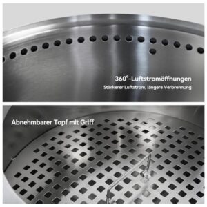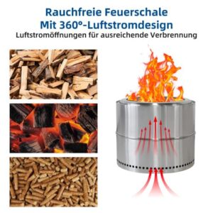 - 【Saubere & effiziente Verbrennung】 Innovative Doppelverbrennung reduziert Rauch und Emissionen stark. Genießen Sie ein effizientes, raucharmes Feuer, das Augen nicht reizt und umweltfreundlicher für Garten und Terrasse ist.