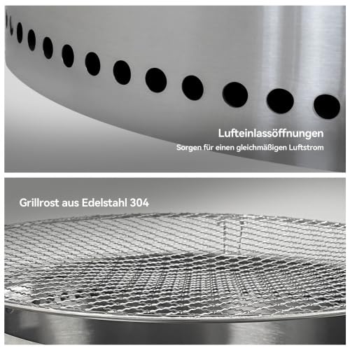 - 【Schnell aufgebaut & vielseitig einsetzbar】 Montage ohne Werkzeug in unter einer Minute. Nutzen Sie sie als Wärmequelle oder mit dem Grillrost als praktischen Holzkohlegrill für BBQ, Camping und Gartenfeste.