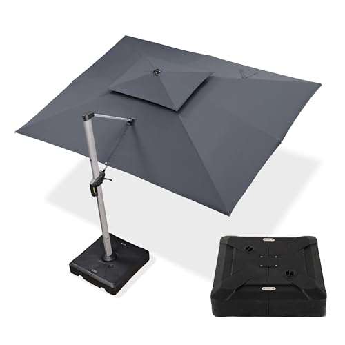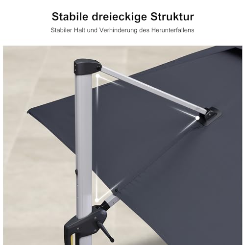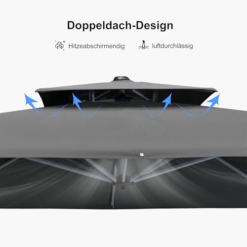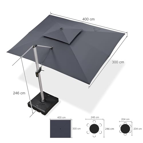 - Großer Schattenbereich: Ampelschirm (mit Sonnenschirmständer) 300 x 400 cm, das Ihnen eine größere Sonnenschutzfläche bietet,Sonnenschirm mit Doppeldach, verhindert Umkippen bei Wind und gewährleistet Stabilität