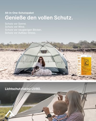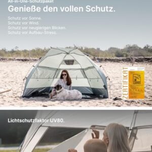 - UV-SCHUTZ: XXL Strandzelt mit zertifizierten Lichtschutzfaktor UV 80 / Sonnenschutz für Familien, Kinder & Baby´s