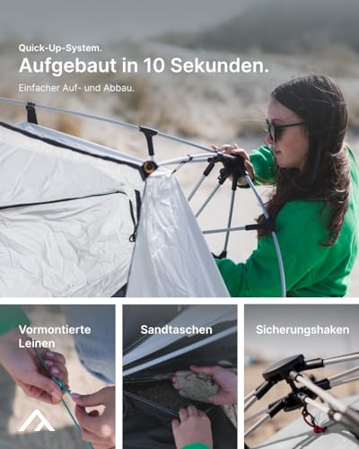 - QUICK-UP-SYSTEM: wenige Sekunden Aufbauzeit - einfacher im Abbau als selbstaufbauende Pop-Up Strandmuschel