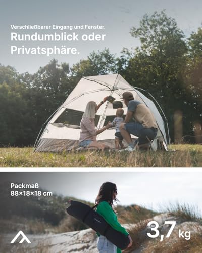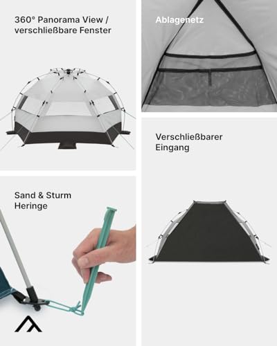 - GERÄUMIG: ausreichend Platz für ca. 2-3 Personen / Windstabil dank Abspannleinen und Sandsacktaschen