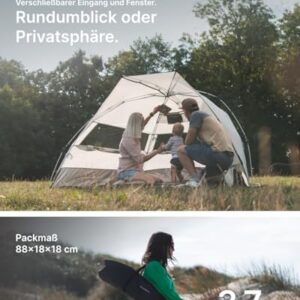 - KOMPAKTES PACKMAß: Zelt bietet im Vergleich zur Wurf-Strandmuschel sehr kompakte Packmaße von 88 x 18 x 18 cm (LxBxH)