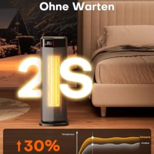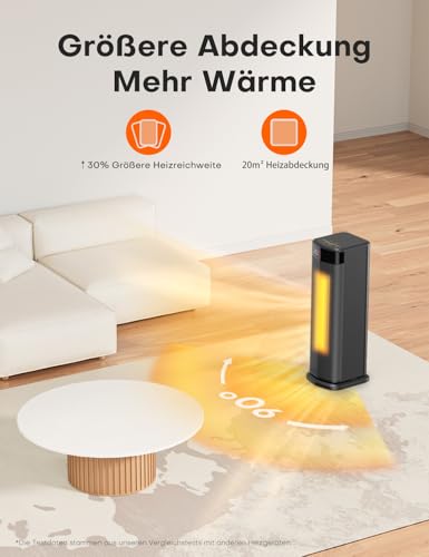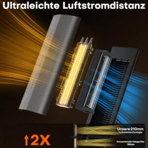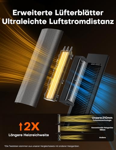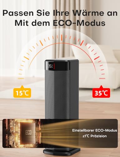 - Erweiterte Heizabdeckung: Der heizlüfter energiesparend verbreitet Wärme in jedem Raumwinkel mit Einem leistungsstarken Motor, moderner Ventilatortechnologie und einer 90°-Schwenkfunktion, die die Heizreichweite um 30 % vergrößert