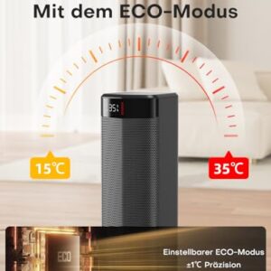 - Energieeffizient und Präzise Temperaturregelung: Der ECO-Modus des heizung passt die Temperatur zwischen 15°C und 35°C an, reduziert Heizkosten und sorgt für angenehme Wärme. Es gibt auch drei Modi: Hoch, Niedrig und Naturwind, um verschiedene Heizbedürfnisse zu decken