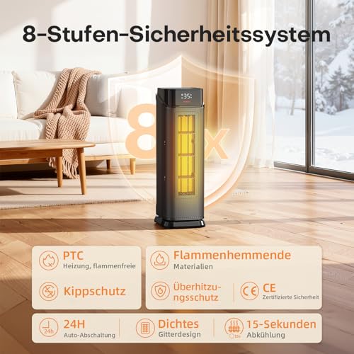 - Umfassender Sicherheitsschutz: Der heizlüfter bad besteht aus feuerfesten V0-Materialien und bietet Überhitzungsschutz, Kippschutz und eine automatische Abschaltung nach 24 Stunden für maximale Sicherheit