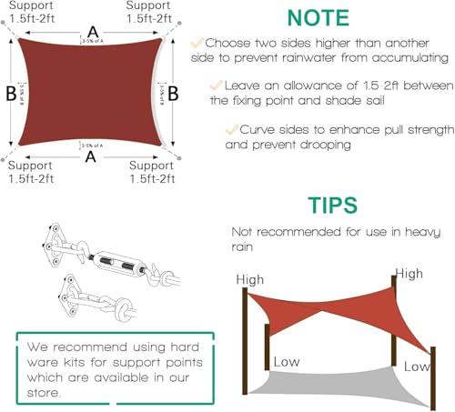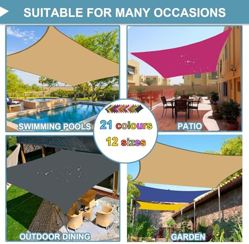 - 【Vielseitige Anwendungen】Sonnensegel können für private und kommerzielle Zwecke verwendet werden: Terrassen, Rasen, Gärten, Innenhöfe, Schwimmbäder, Terrassen, Parks, Parkplätze, Restaurants, Bars oder andere Außenbereiche, um im Sommer kühl zu bleiben. Es ist leicht und kompakt und kann problemlos in der Originaltasche oder den meisten Rucksäcken getragen werden.