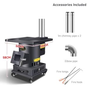 - 【Rauchfreies, hocheffizientes Design】– Dieser fortschrittliche Holzofen verfügt über eine lasergeschweißte, vollständig versiegelte Struktur, die eine saubere Verbrennung gewährleistet, Rauch minimiert und eine starke, gleichmäßige Wärmeabgabe zum Kochen oder Heizen liefert.