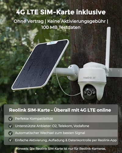 - Standalone, Ideal für den Außeneinsatz: Dank der Kombination aus 6W-Solarpanel und 4G-Verbindung bei dieser Standalone-4G-Kamera brauchen Sie in der Wildnis keine Steckdosen oder Netzwerk zu suchen. Unser Überwachungskamera mit sim karte unterstützt zudem die wichtigsten Mobilfunknetzbetreiber in den meisten Ländern und wählt automatisch den Netzoperator mit dem stärksten Signal aus.