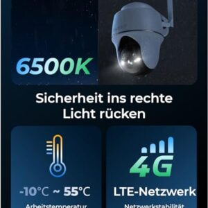 - Unglaubliche 4K-Bilder bei Tag & Nacht: Die erste 4K 3G/4G LTE Kamera kann klare Bilder und Videos mit vielen Details aufnehmen. Selbst in der tiefen Nacht werden die Farbsicht und die Klarheit auf dem Bildschirm auf keinen Fall beeinträchtigt.