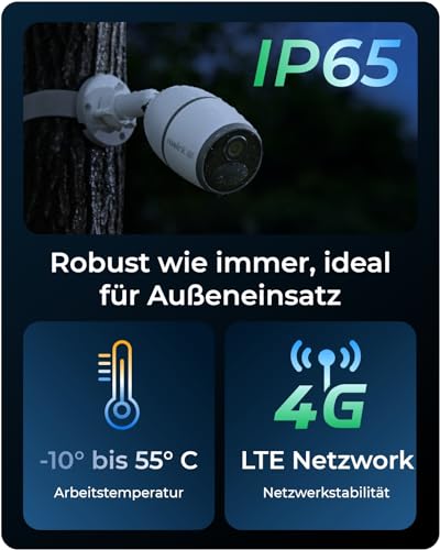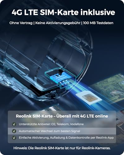 - EINFACHE EINRICHTUNG: Diese 4G LTE Camera mit SIM-Karte lässt sich in fünf Minuten einrichten. Um häufiges Laden und Batteriewechsel zu vermeiden, können Sie einfach das mitgelieferte 6W Solarpanel für ständige Stromversorgung nutzen.