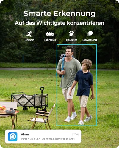 - SMARTE ERKENNUNG & ANPASSBARE BEWEGUNGSZONE & SORFORTIGE ALARME: Diese 4G LTE Solar Kamera Outdoor ohne Wlan kann sich bewegende Menschen, Fahrzeuge, Haustiere erkennen und Sie sofort alarmieren. Sie können die Bewegungszone einstellen und den Fokus auf das Wesentliche richten.
