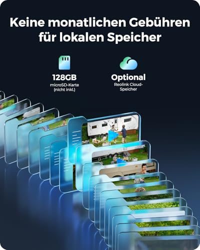 - FLEXIBLE SPEICHEROPTIONEN: Ihre Privatsphäre hat Priorität. Für sichere Speicherung der Bewegungsaufzeichnungen stellen Ihnen lokaler Speicher(microSD-Karte, bis zu 128GB) oder der optionale Cloud-Speicher zur Wahl. Wiedergabe der gespeicherten Clips ist ganz einfach.