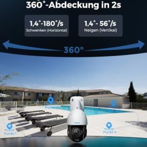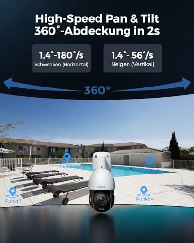 - 360° PAN & 90° TILT & AUTO-TRACKING: Genießen Sie mit der RLC-823S1 einen weiten Blickwinkel. Durch 360°-Schwenk- und 90°-Neigefunktionen verfolgt die Kamera automatisch sich bewegende Ziele aus jeder Ecke. (Einstellbare Schwenkgeschwindigkeit: 1,4°- 180°/s; Neigung: 1,4°- 56°/s).