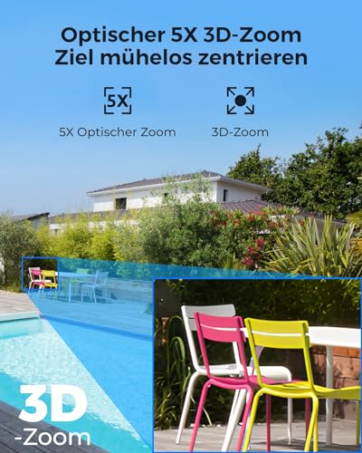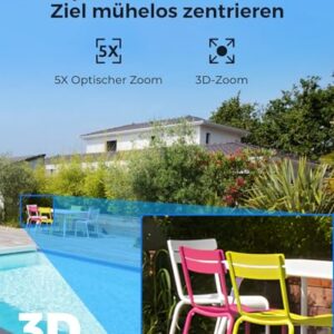- 5X 3D-OPTISCHE ZOOMFUNKTION: Die 3D-Zoomfunktion sorgt für ein optimales Live-View-Erlebnis und ermöglicht die sofortige Fokussierung auf bestimmte Bereiche ohne mehrere Klicks. Sie können Ihr Ziel mühelos erfassen und in die Mitte des Bildschirms setzen.