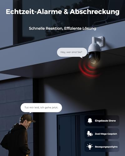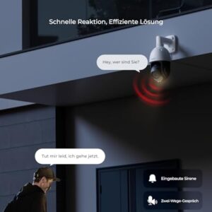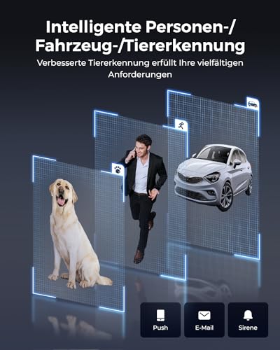 - SMARTE ERKENNUNG & 2-WEGE-AUDIO: Präzise Erkennung von Personen-/Fahrzeugbewegungen und Reduzierung von Fehlalarmen. Unsere fortschrittliche Tiererkennung geht über Katzen/Hunde hinaus und erkennt mehr Tieren. Sie können überdies mit Personen an der Seite der Kamera über Zwei-Wege-Audio sprechen.