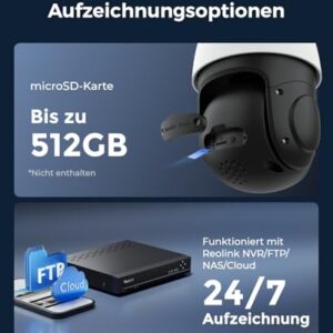 - EINFACHE PoE-INSTALLATION & FLEXIBLE AUFZEICHNUNGSOPTIONEN: Dank der Power-over-Ethernet-Technologie (PoE) kann diese PTZ-IP-Kamera über nur ein Netzwerkkabel zugleich Videos übertragen und geladen werden. Speichermöglichkeiten: microSD-Karte (max. 512GB, nicht inkl.), Reolink NVR, FTP-Server oder Reolink Cloud. Reolink Cloud ist verfügbar, nachdem die Kamera auf die neueste Firmware aktualisiert wurde